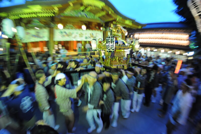 新花町会様のお神輿では、弓張り提灯の中に本物のろうそくのような動きをする
